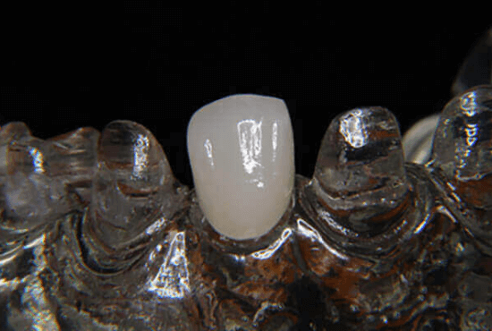 ジルコニアの強度と、ポーセレンが持つ透明感、繊細な色調再現の特性を組み合わせた素材。