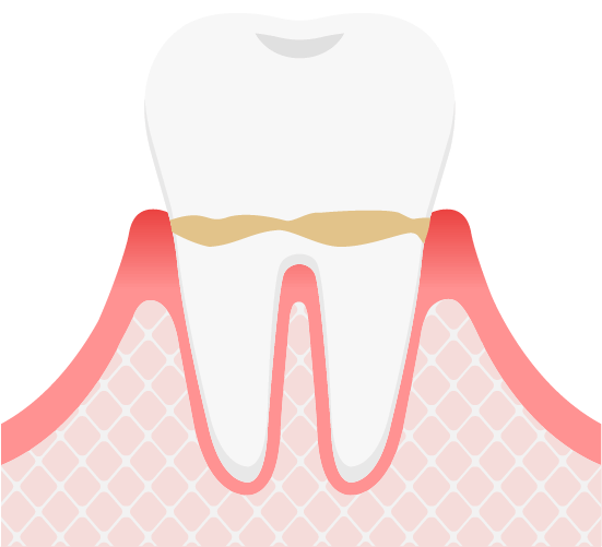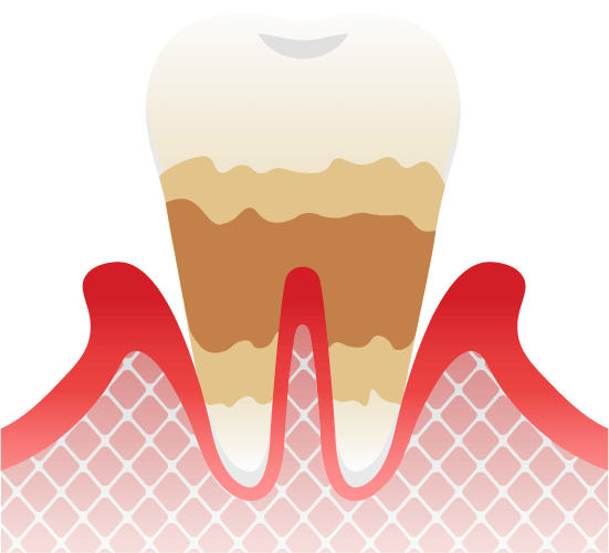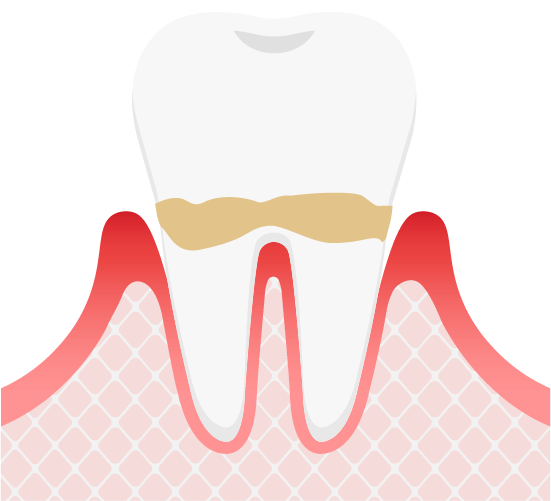 歯周病菌が歯周組織に侵入し始めるため、歯槽骨や歯槽膜が溶け始めます。