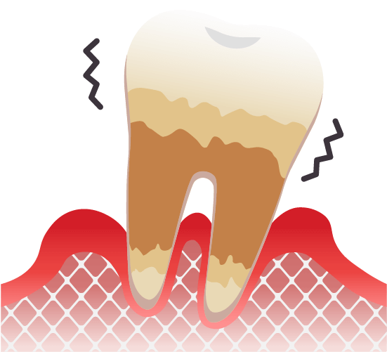 歯槽骨が破壊されて、歯がグラグラな状態になります。